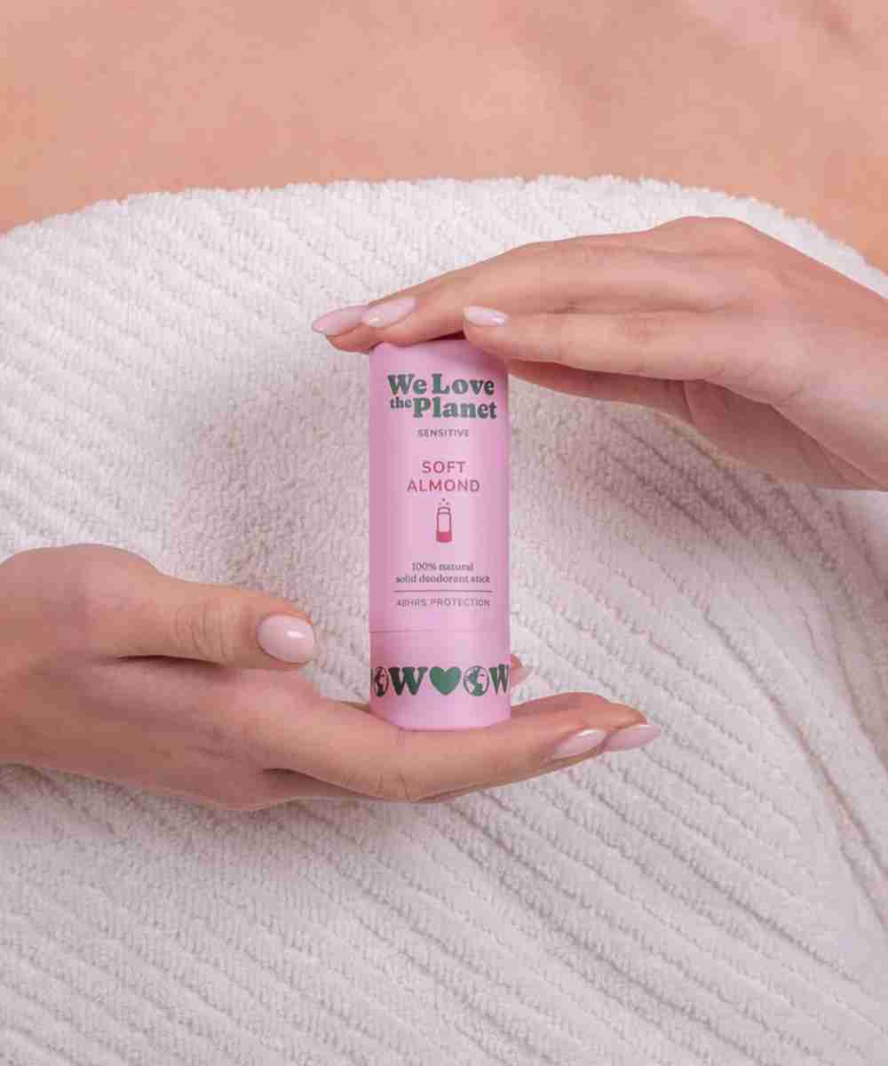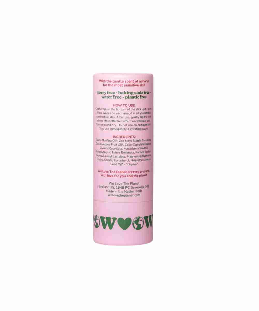 El Desodorante Natural Soft Almond de We Love the Planet está formulado específicamente para pieles sensibles, reactivas o que no toleran el bicarbonato.